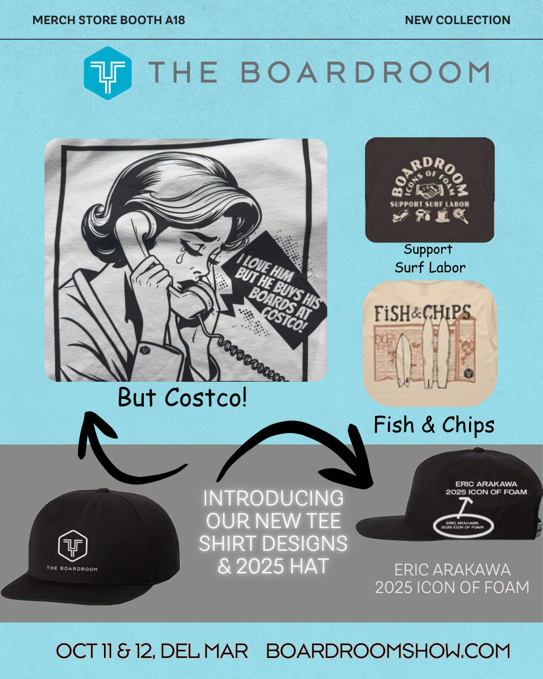 So much more than a tool, the surfboard is the philosophical icon, a sacred craft, a culturally pervasive symbol of freedom, adventure and enduring youth. This is why the surfboard builder was once the primary arbiter of surfing culture, from those early Hawaiian kahunas to the first wave of board manufactures. Think back: Hobie, Hansen, Bing, Weber, Larkin, Noll, Jacobs, Haut, et al. These surfboard builders shaped surf culture, both literally and figuratively. It was all about the ride–what you wore came second. Since 2007 THE BOARDROOM SHOW has reasserted and maintained this philosophy. To put the surfboard — and the modern day kahunas who craft and design them — back at the forefront of surf culture. Today the international surfboard building community places surf culture, its influence, its importance, its responsibility, back in the hands of the artisans who shape our sacred craft – and ultimately our future. Please join us as we showcase builders, designers, craftsman, surfboards, essential surf equipment, gear, art, music & more.